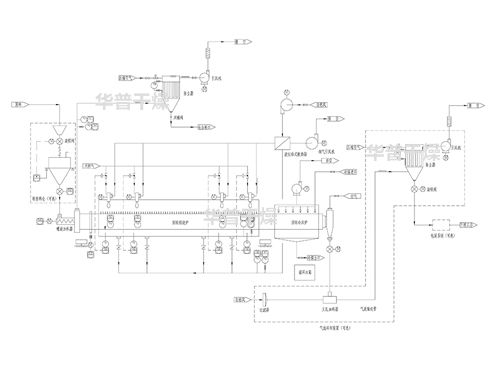噴霧干燥系統(tǒng)+回轉(zhuǎn)焙燒爐系統(tǒng)+冷卻輸送系統(tǒng)